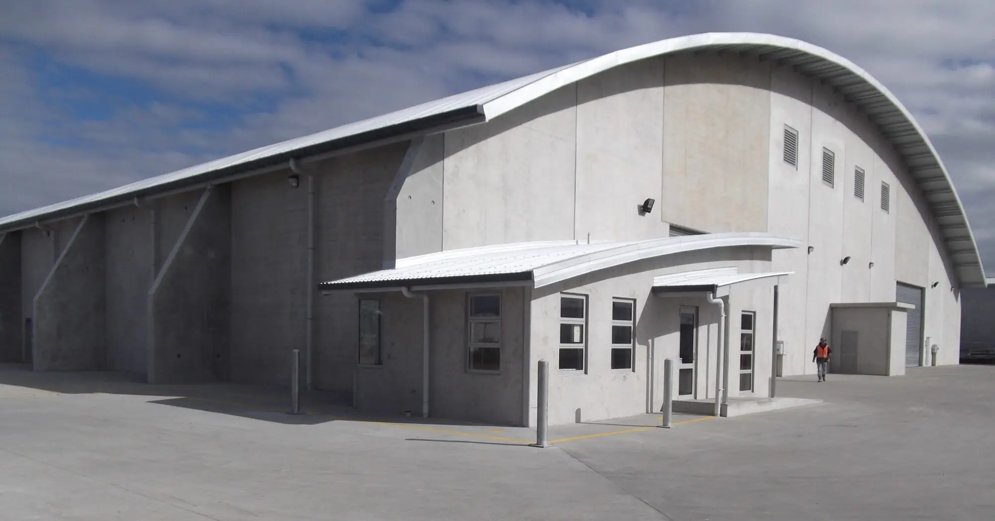 One key feature and design success is the highly efficient curved arch roof structure with abutments. The design and construction of the structure ensured the building was substantially more cost-effective for the client when compared to traditional construction methods.